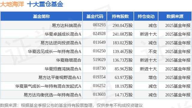 根据2025基金年报公募基金重仓股数据,重仓该股的公募基金共9家,其中持有数量最多的公募基金为易方达基金的易方达科瑞混合。易方达科瑞混合目前规模为10.73亿元,最新净值2.4257(4月15日),较上一交易日下跌0.26%,近一年上涨48.65%。该公募基金现任基金经理为杨嘉文。杨嘉文在任的基金产品包括:易方达逆向投资混合A,管理时间为2021年4月1日至今,期间收益率为34.58%;易方达均衡优选一年持有混合A,管理时间为2022年5月26日至今,期间收益率为54.97%;易方达平衡视野混合A1,管理时间为2023年12月4日至今,期间收益率为63.34%。